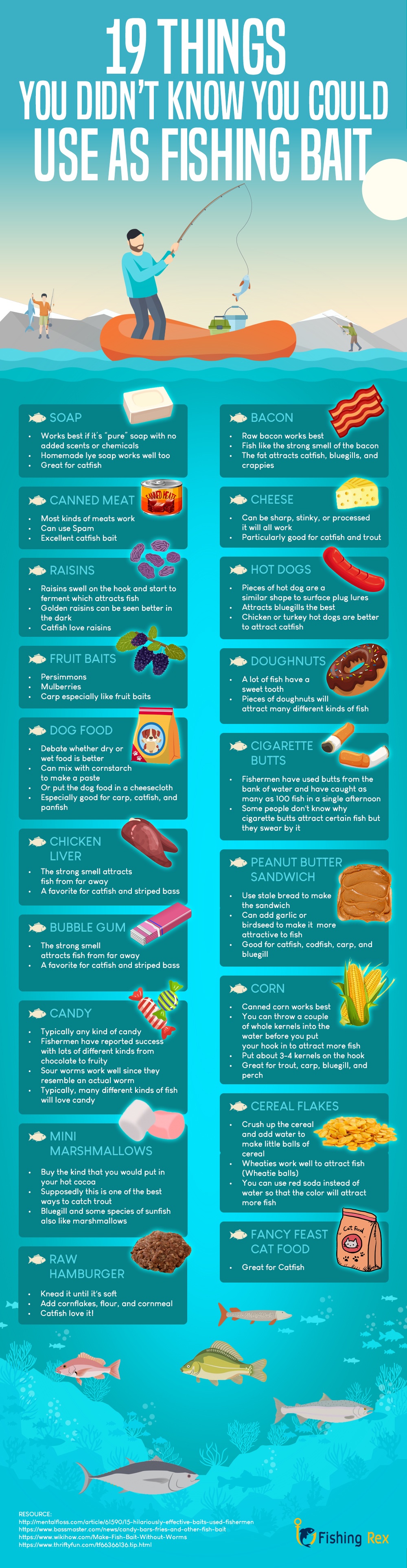 <p><strong>Please include attribution to https://www.fishingrex.com with this graphic.</strong><br /><br /><a href=’https://www.fishingrex.com/19-things-you-didnt-know-you-could-use-as-fishing-bait/’><img src=’https://www.fishingrex.com/wp-content/uploads/2019/03/19-Things-You-Didn’t-Know-You-Could-Use-as-Fishing-Bait.jpg’ alt=’19 Things You Didn’t Know You Could Use as Fishing Bait’ width=’1000px’ border=’0′ /></a></p>